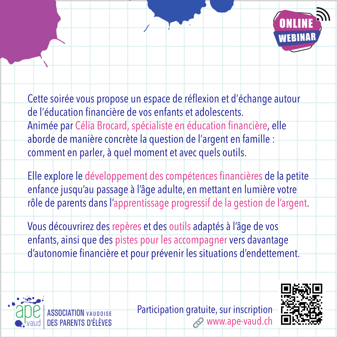 Découvrez-le en participant à cette webconférence gratuite, sur inscription : Webconférence « Parlons d’argent en famille! » – Mercredi 20 mai 2026 à 20h00 par Zoom – APE Vaud – Association vaudoise des parents d’élèves